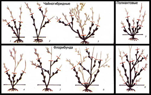 Кустовые, чайные и чайно-гибридные розы обрезают умеренно, на половину высоты побегов. Если почва бедная, куст обрезают легкой обрезкой.