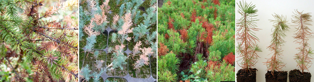 Фузариоз чаще проявляется в условиях плохой дренировки, аэрации и закисленности почвы, когда корни хвойного растения находятся в неблагоприятных условиях. Холодное, мокрое лето – лучшие условия для развития фузариоза. Часто болезнь может отступать с наступлением холодной погоды и возвращаться с потеплением. Холодная ночь и жаркий день, после продолжительной дождливой погоды или перелива хвойных растений идеально способствуют развитию фузариоза.