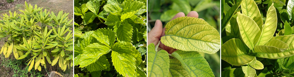 Как правило, это верхушечный хлороз листьев и побегов и угнетение роста растения. Чаще всего недостаток железа встречается на щелочных, карбонатных почвах с избытком кальция или наоборот на очень кислых почвах.