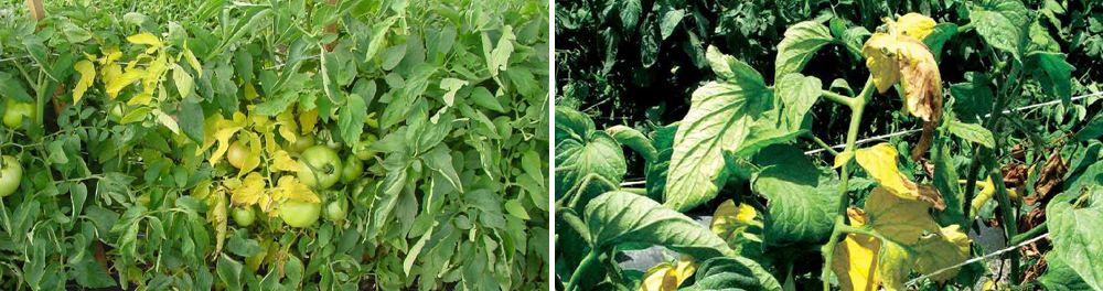 Хлороз такого же типа может вызвать бактериальный рак растений, характеризующийся разрастающимися опухолями на корнях и древесине.