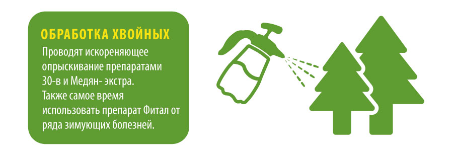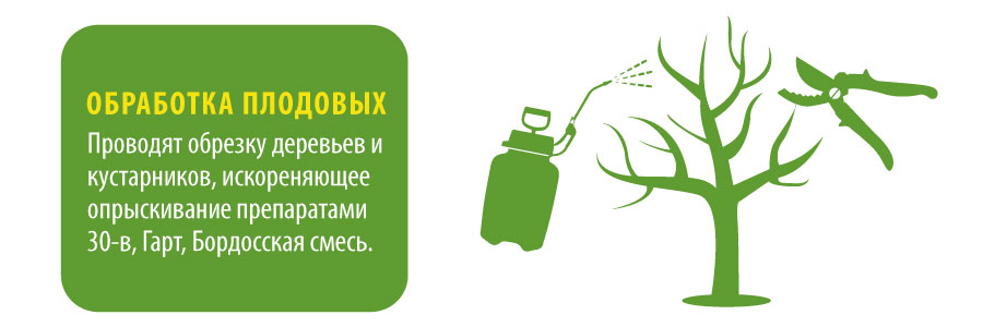 Отделка, еще один важный процесс. В этот период проводят искореняющее опрыскивание. Препаратом 30-В и Медян экстра. Также самое время применить препарат Фитал от ряда зимующих стадий болезней. Особенно тщательно возделывают растения, переболевшие в текущем году.