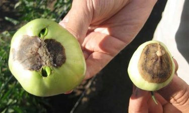 Характерные признаки недостатка кальция - верхушечная гниль плодов, а бора - растрескивание, почернение и загнивание плода у плодоножки.