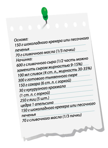 1. Соедините в мерном стакане крем-сыр, тыквенное пюре (предварительно сваренное и взбитое в пюре), апельсиновую цедру, сливки, сахар. Взбейте блендером до однородной смеси.