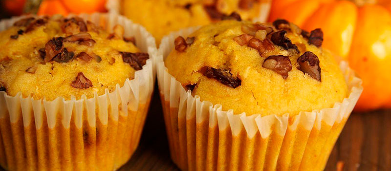 2. Орехи измельчить, тыкву натереть на терке. Добавить орехи и тыкву в тесто. Формы смазать сливочным маслом, выложить в них тесто, наполняя примерно на 2/3. Выпекать при 180°C около 25-30 минут