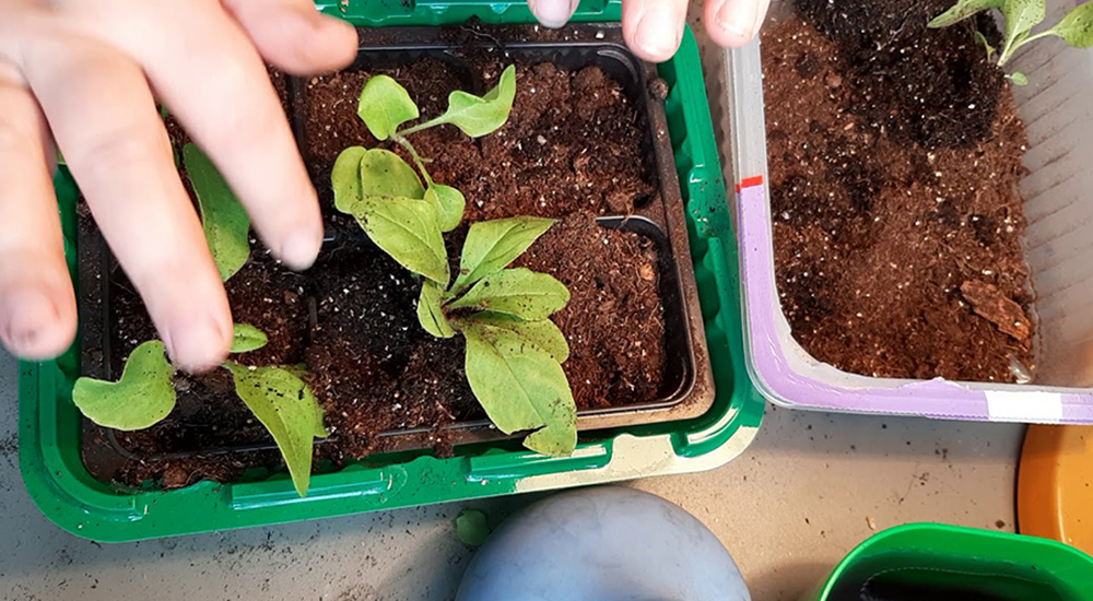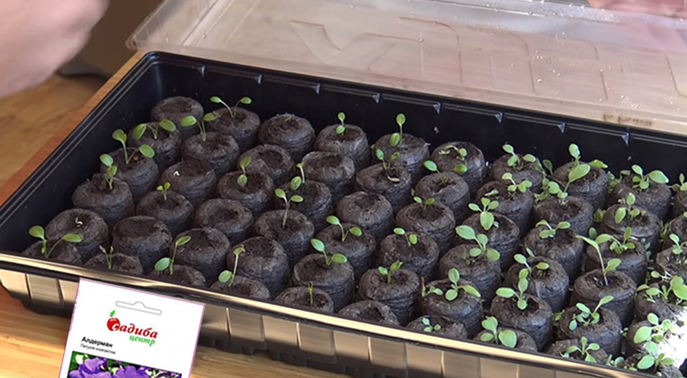 Полив рассады проводят крайне аккуратно, только теплой водой из опрыскивателя, не допуская заливания растений. Когда рассада достигнет достаточного размера, ее пикируют в большие емкости. Идеальной является кассета с диаметром 5 см, а для особо ценных, крупноцветковых и ампельных растений – горшки Modiform диаметром 8-10 см. В горшки большего размера можно высаживать по 3 растения.