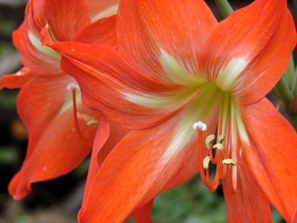 В домашних условиях растению обычно обеспечивают период покоя на 10-12 недель, после чего возобновляют полив. Цветение наступает через 30-40 дней. В этот период растению необходимо много света, оно хорошо переносит и прямые солнечные лучи. Оптимальной температурой в период формирования цветоноса считается 20-22 °С. Следует избегать резких перепадов температуры, так как это может замедлить рост растения и привести к развитию заболеваний. Очень важно соблюдать достаточные поливы, растению могут повредить как засуха, так и переувлажнение. Поливать нужно теплой водой, стараясь не попадать на луковицу. Поливы увеличивают постепенно. Обильный полив сразу после периода покоя, как и подкормки азотными удобрениями, такими как Карбамид, может стимулировать развитие листьев, а цветение может так и не наступить. Как только на цветоносе появляется бутон, поливы должны стать регулярнее и обильнее. Цветонос также можно слегка опрыскивать теплой водой. Через 10-12 дней после пробуждения луковицы следует возобновить подкормки. Во время цветения луковица расходует питательные вещества, накопленные в предыдущий сезон, но подкормки необходимы, чтобы луковица не потеряла слишком много сил. Подкормки проводят один раз в две недели, комплексным минеральным удобрением. В нем должно быть немного азота, много фосфора и калия. Например, Плантафол 5.15.45 или Мастер для цветущих. Фосфор способствует формированию более мощного цветоноса и продлит цветение, а калий обеспечит закладку бутонов в будущем и поддерживает силы луковицы. Азот необходимо использовать в минимальных количествах, чтобы не стимулировать развитие листовой массы и вытягивания цветоноса. Если цветение происходит на слишком коротком цветоносе, а сами цветки мелкие и бледные, это может свидетельствовать о том, что в предыдущем сезоне луковицу недокормили. Если же цветонос короткий, но при этом цветки крупные, это может свидетельствовать о переизбытке калия в прошлом сезоне. Отмечена также зависимость длины цветоноса от освещенности – чем больше света, тем короче и плотнее цветонос. Продлить период цветения поможет снижение температуры в помещении до 10°С и удаление пестика. После отцветания, обычно не дожидаясь завязей, цветонос обрезают, примерно на 2̸3. Полностью обрезают цветонос после его полного засыхания.