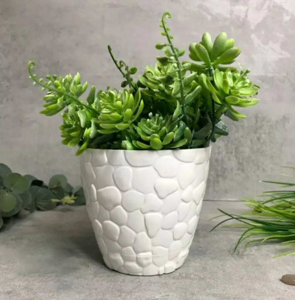| Горшок Elif Камни станет идеальным домом для небольших комнатных цветов или других растений. В таком горшке корневая система растений не сгниет, поскольку лишняя влага будет уходить через дренажные отверстия в специальную подставку. Горшок прочный и надежный. Он устойчив к перепадам температуры и воздействию солнечных лучей. У него насыщенный цвет и красивое рельефное покрытие. |