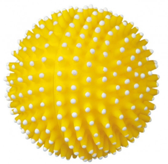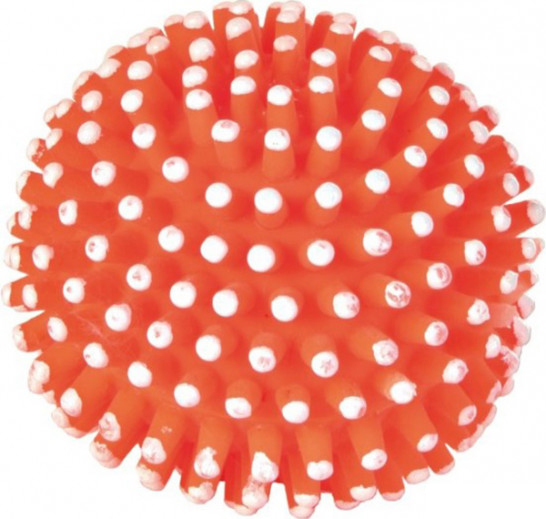 Виниловая игрушка в виде мячика с мягкими шипами для собак всех возрастов и любых пород. Позволяет очищать зубы от налета, и массажировать десна.