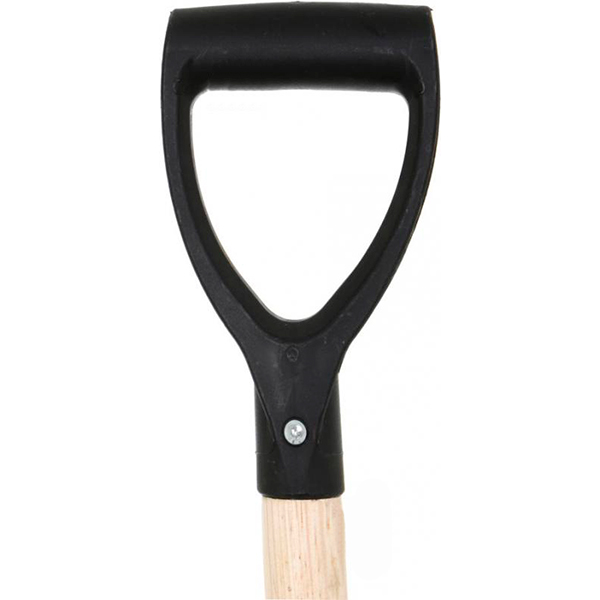 Цельная штыковая лопата с черенком из дерева ясеня и D-образной ручкой. Ширина рабочей части – 18,5 см. Длина насадки – 27 см.