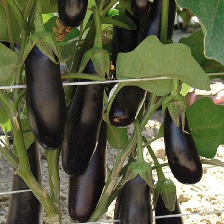 Очень ранний (70-80 дней) гибрид баклажана. Растение открытого типа, высота 45-60 см. На растении формируется по 6-8 плодов.