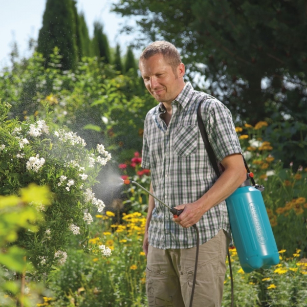 Опрыскиватель GARDENA вмещает 5 л жидкости и идеально подходит для ухода за садовыми растениями. Опрыскиватель рассчитан на давление не более 3 бар и снабжен предохранительным клапаном для быстрого сброса давления в целях обеспечения безопасной эксплуатации. Индикатор уровня показывает количество жидкости в емкости, при этом емкость открывать не требуется. Наличие эргономичной D-образной рукоятки облегчает подачу воду. Расположенный под углом распылитель идеально подходит для полива под листьями. Практичный курок с фиксатором и плечевой ремень гарантируют удобную эксплуатацию опрыскивателя.