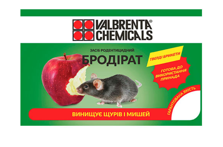 Бродират ТБ в форме твердого брикета – это безопасное уничтожение мышей и крыс.