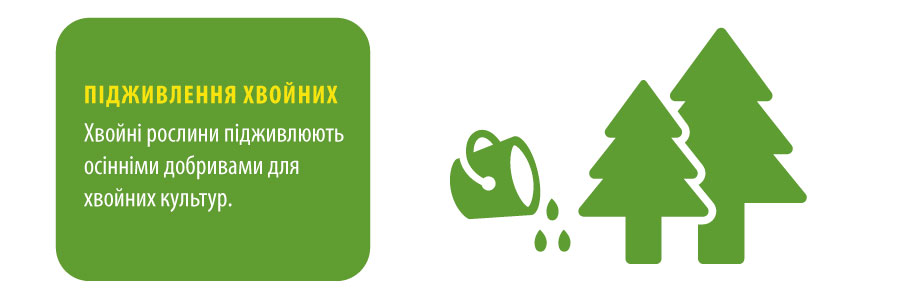 Для поліпшення дозрівання, підвищення цукристості плодів і кращого зберігання плодів в сховищі, за тиждень до збирання проводять позакореневе підживлення баковою сумішшю з Мегафол + Плантафол 5.15.45 ( Майстер 3.11.38 ), Світ. Наприкінці вересня під плодові культури вносять гранульовані осінні добрива Арві- осінь, Дюратек.