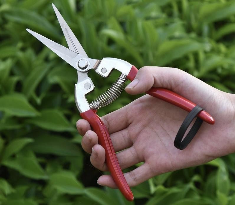 Садові ножиці – це більш компактний і легкий інструмент, який ідеально підходить для роботи з тонкими гілочками та квітами. Їх часто використовують для оформлення декоративних рослин, підрізання квітів та зелених пагонів, а також для робіт по догляду за газоном. Садові ножиці мають точне лезо, яке дозволяє робити акуратні зрізи без пошкодження тканин рослини, що сприяє її швидкому відновленню. Цей інструмент також широко застосовується для догляду за делікатними рослинами в саду та теплицях.