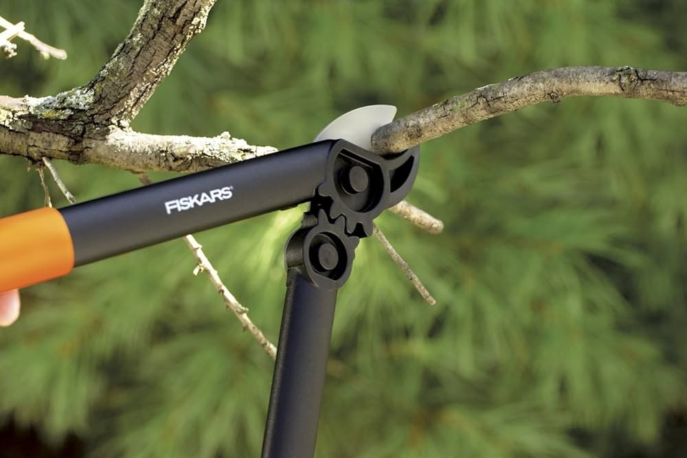 Якщо потрібно працювати з високими деревами або кущами, де необхідно зрізати товсті гілки, найкращим вибором стануть садові ножиці або гілкорізи з телескопічними ручками або штангою (наприклад Fiskars), які дозволяють працювати на висоті та знижують навантаження на руки.