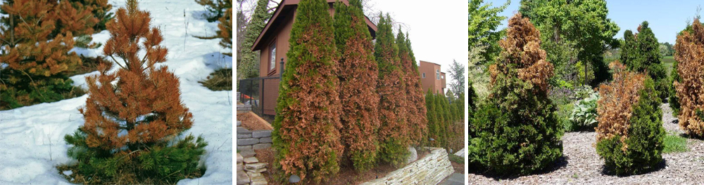 Для обприскування хвойних рослин застосовують добрива Плантафол для хвойних або Плантафол 20.20.20 з додаванням органічних мікроелементів Брексил Мікс, Brexil Multi або Хелп Рост. Обприскування добривами проводять 2-3 рази протягом весни. До того ж такий комплекс у поєднанні зі стимулятором росту Мегафол, Епін, НВ-101, Ізабіон або Максікроп Крем, чудово підходить для реанімації хвойних після весняних опіків або для відновлення пишного росту після стрижки.