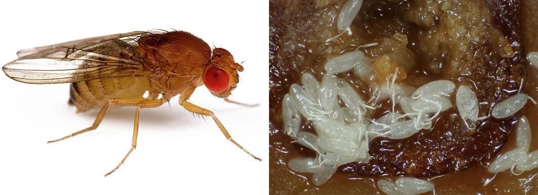 Мушка дрозофіла та її яйця