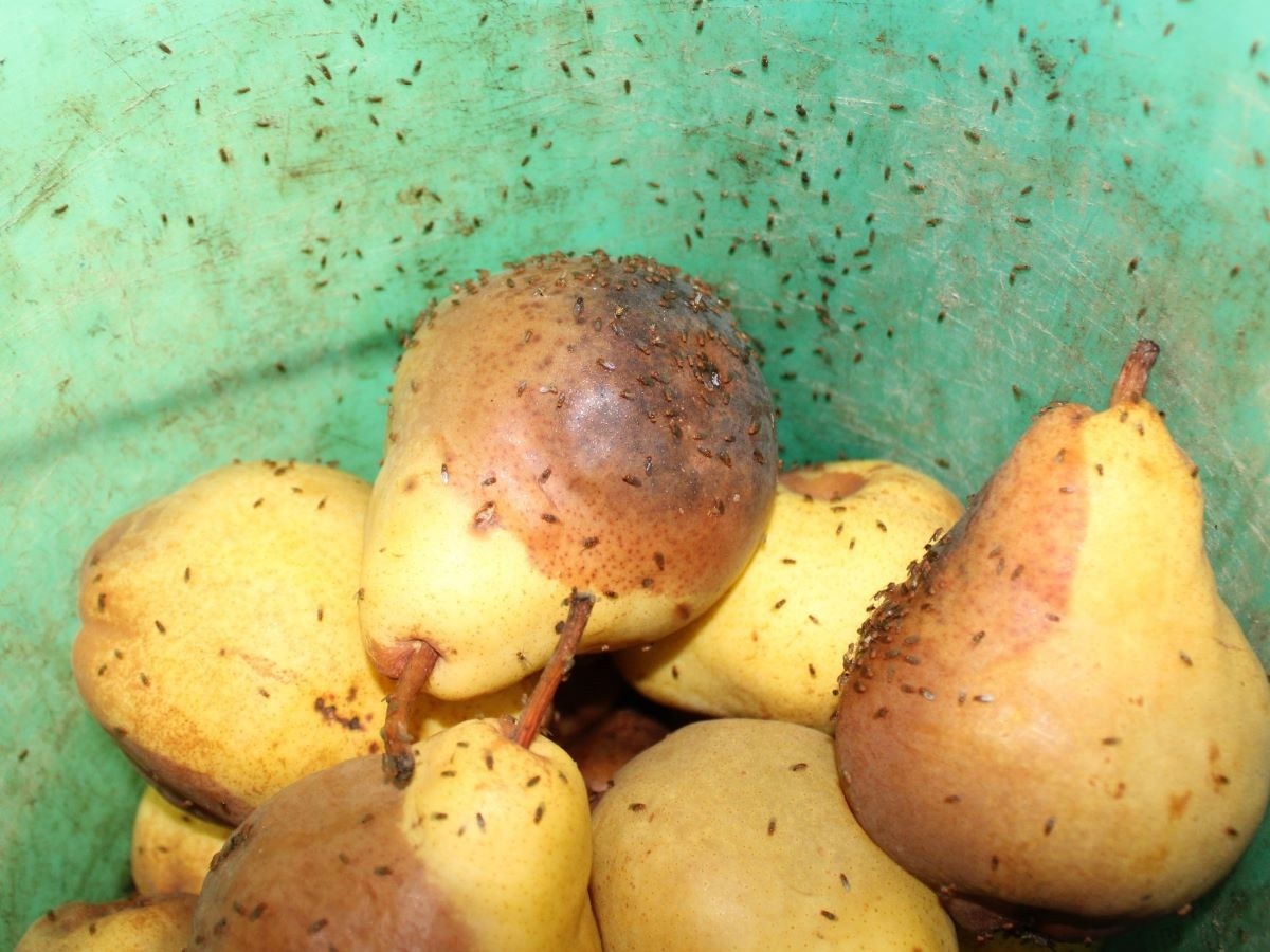 • Перестиглі або зіпсовані фрукти й овочі – мушки відкладають яйця на поверхні продуктів, що починають гнити.